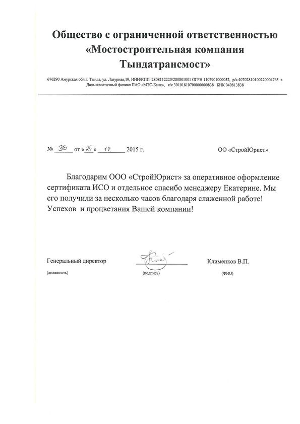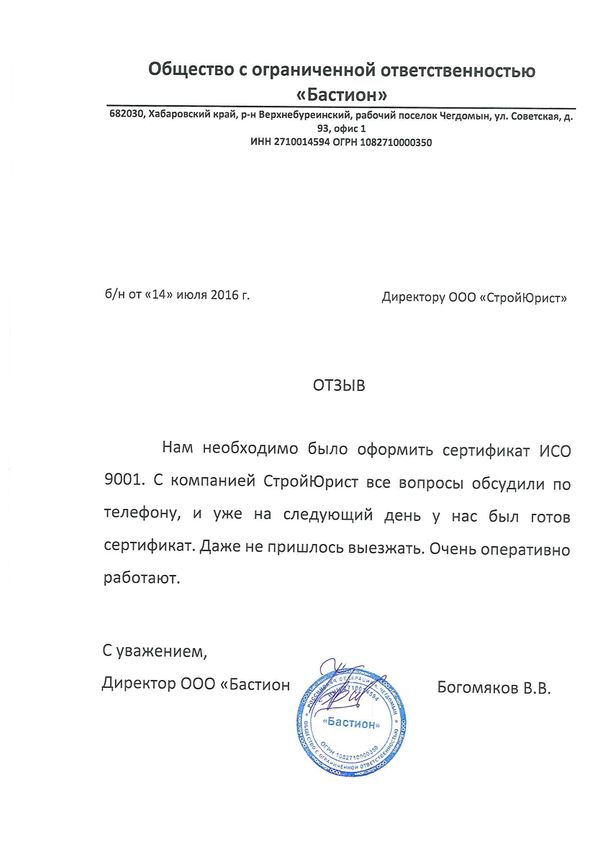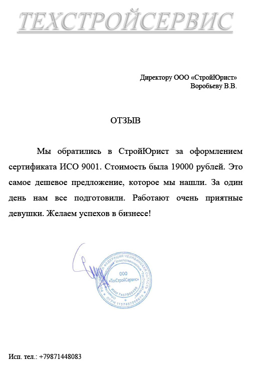 Отзывы клиентов "СтройЮрист" по ISO в Зеленограде