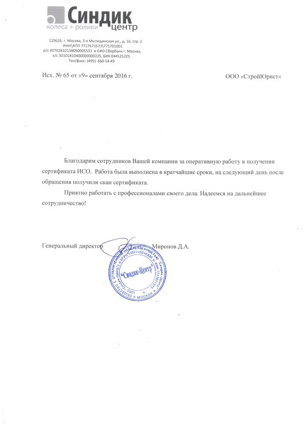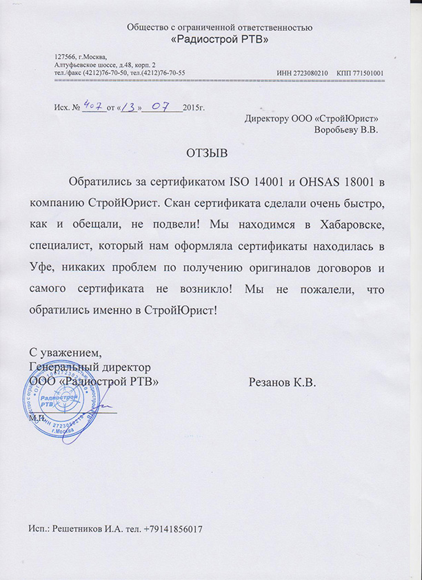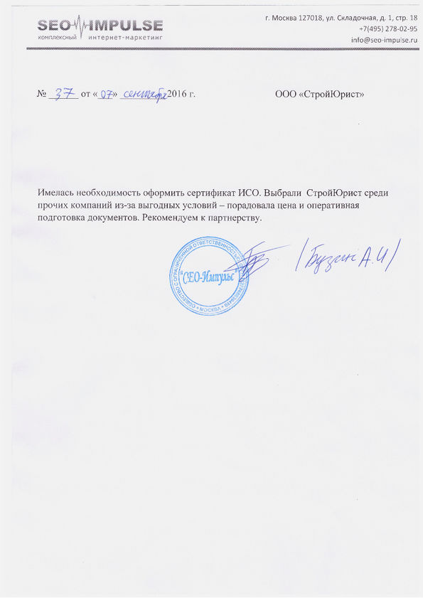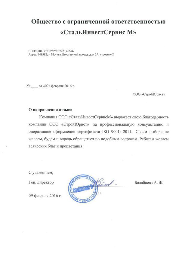 Отзывы клиентов "СтройЮрист" по ISO в Зеленограде