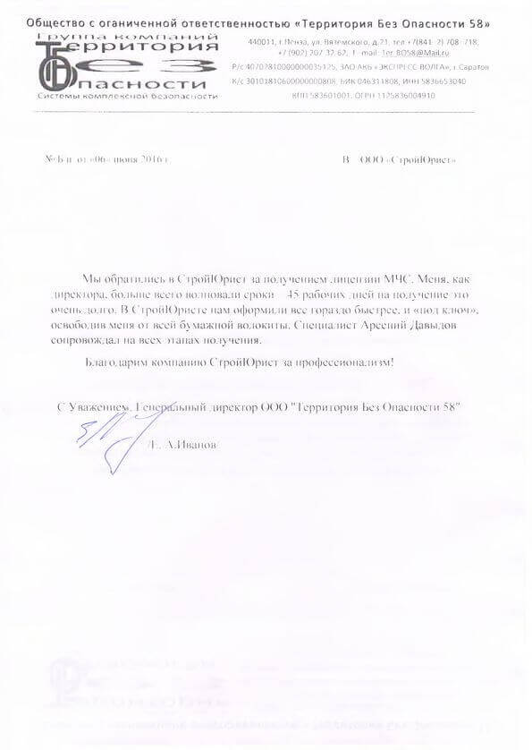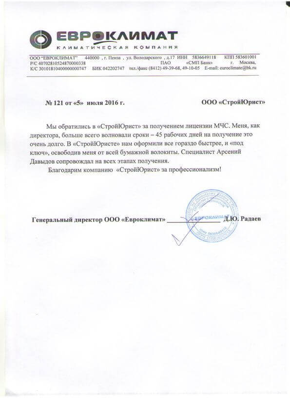 Отзывы клиентов "СтройЮрист" по лицензированию МЧС в Зеленограде