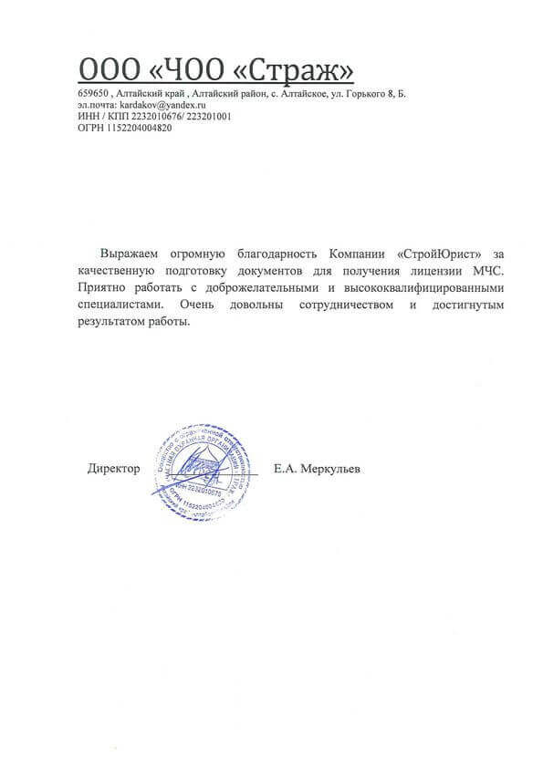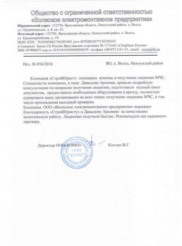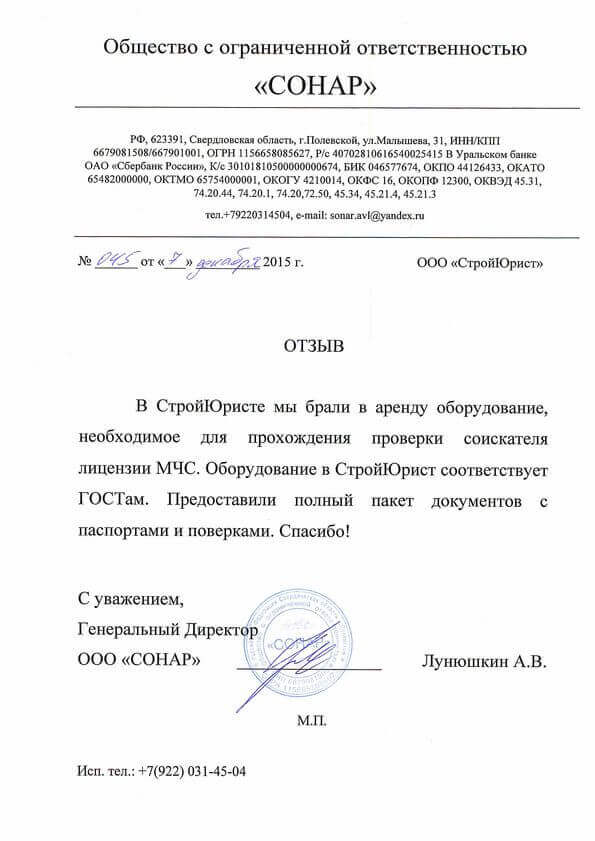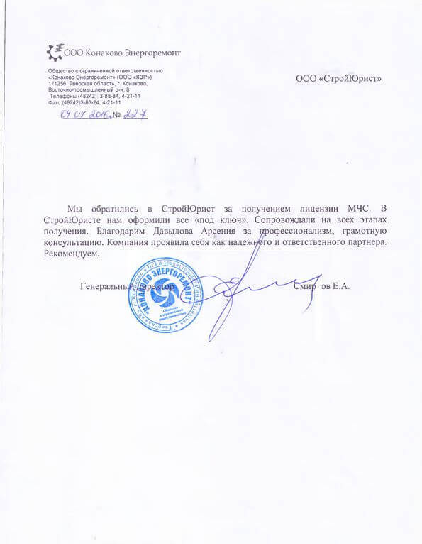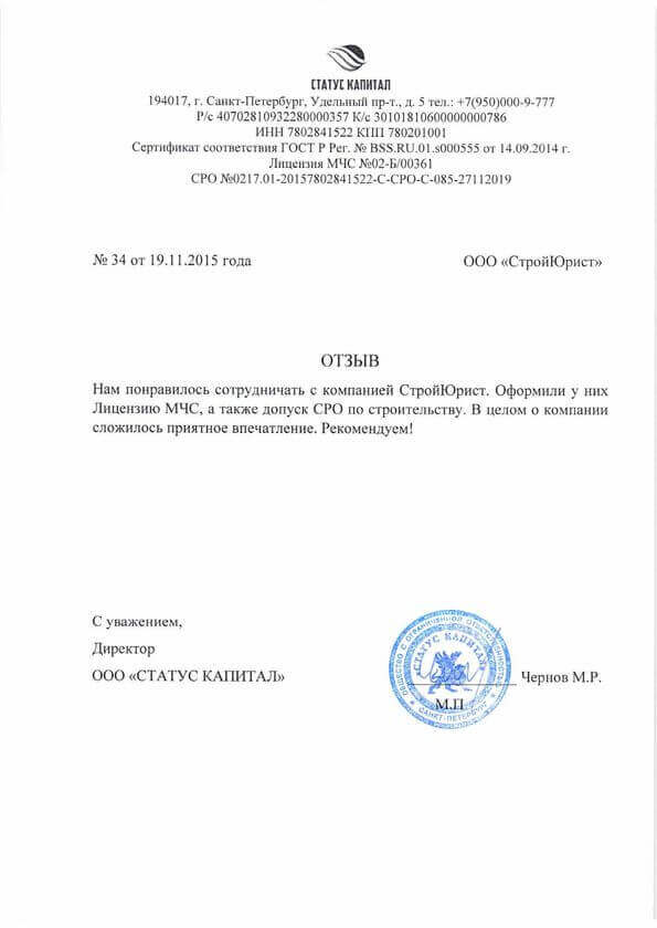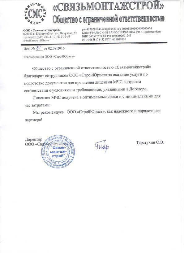 Отзывы клиентов "СтройЮрист" по лицензированию МЧС в Зеленограде