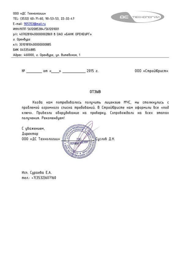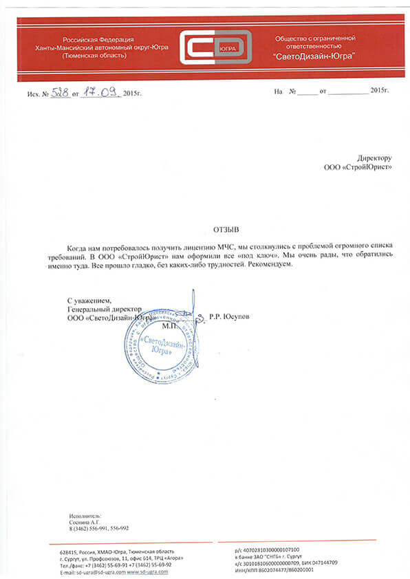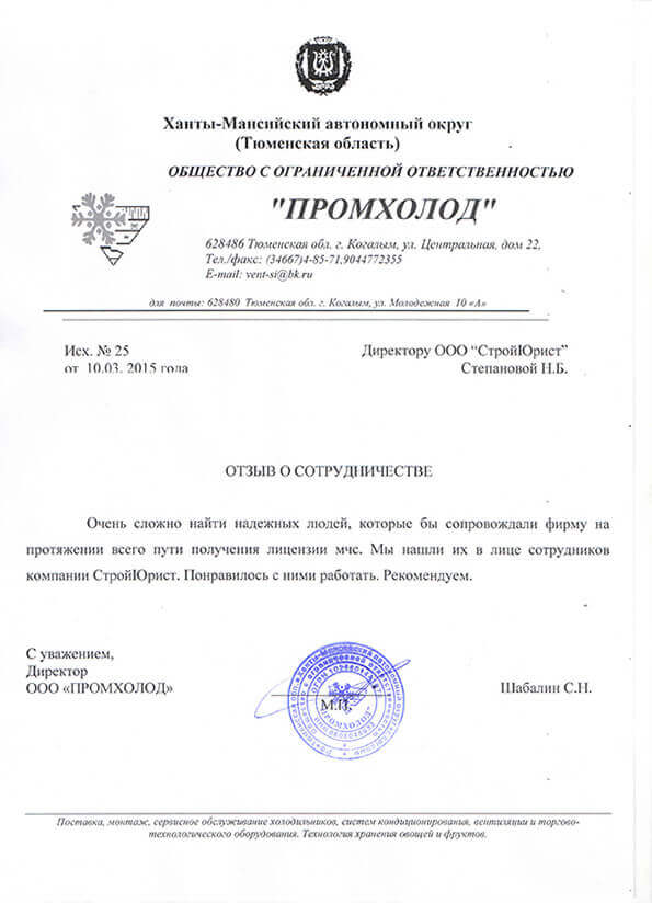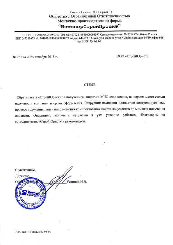 Отзывы клиентов "СтройЮрист" по лицензированию МЧС в Зеленограде