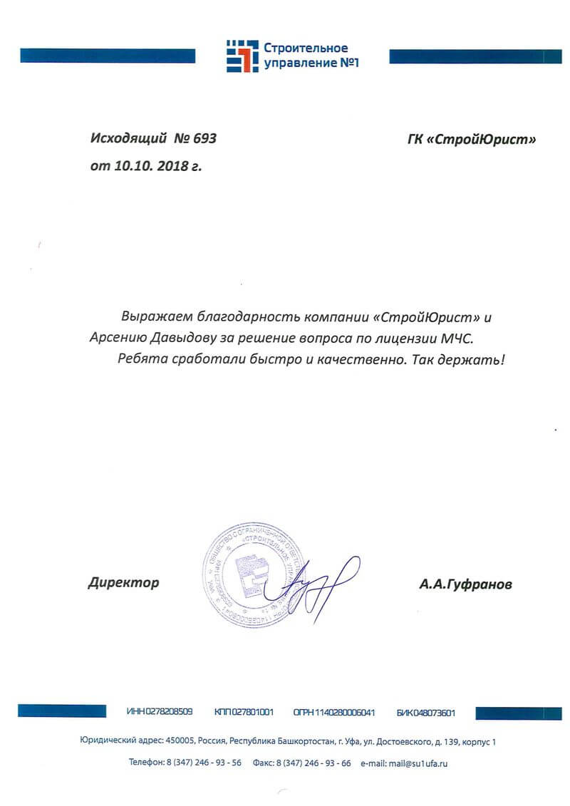 Отзывы клиентов "СтройЮрист" по лицензированию МЧС в Зеленограде