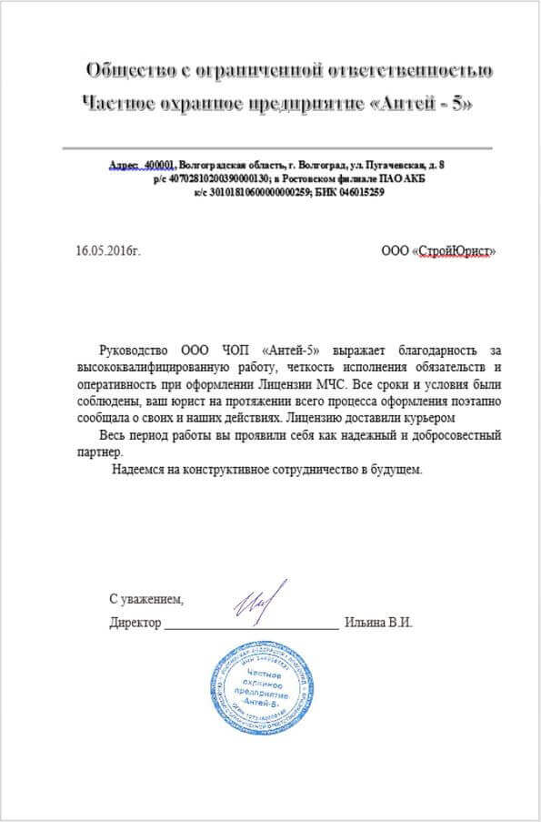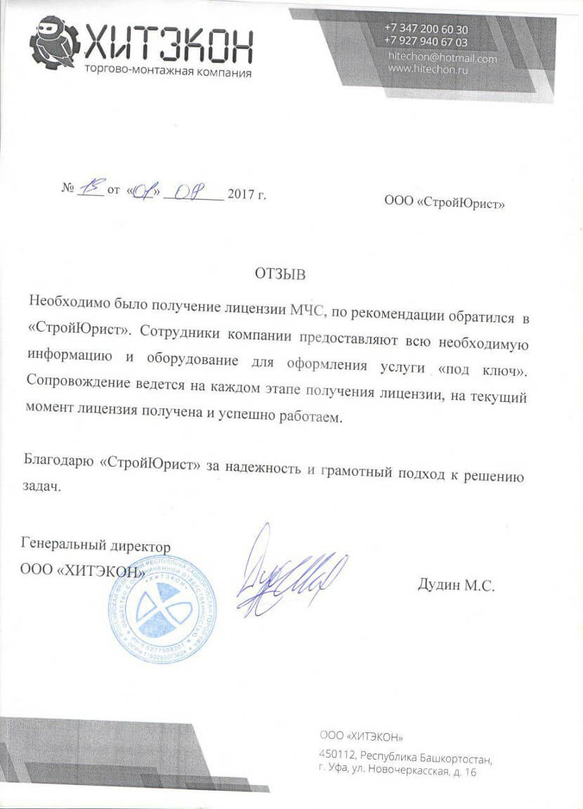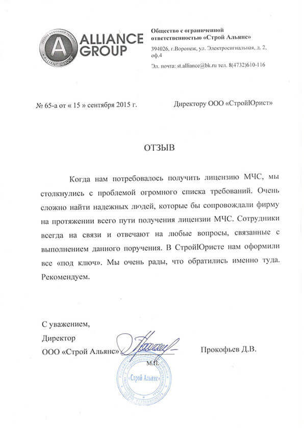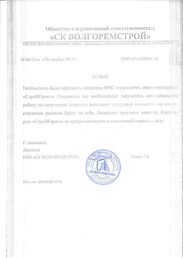 Отзывы клиентов "СтройЮрист" по лицензированию МЧС в Зеленограде