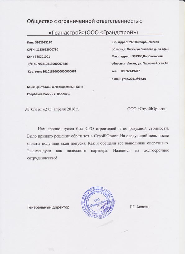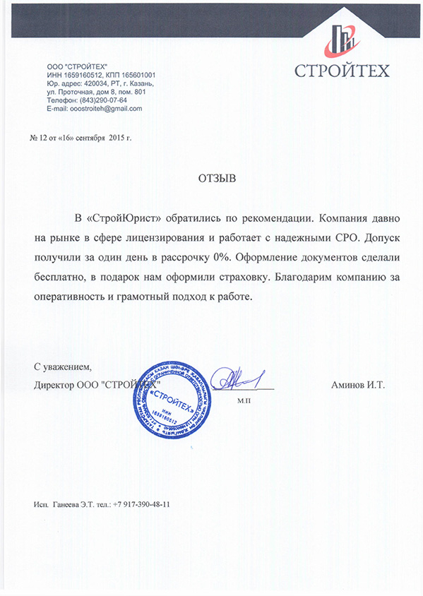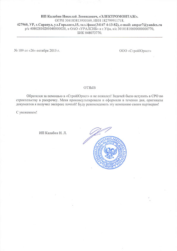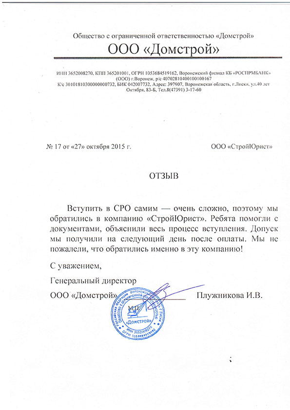 Отзывы клиентов "СтройЮрист" по вступлению в СРО в Зеленограде