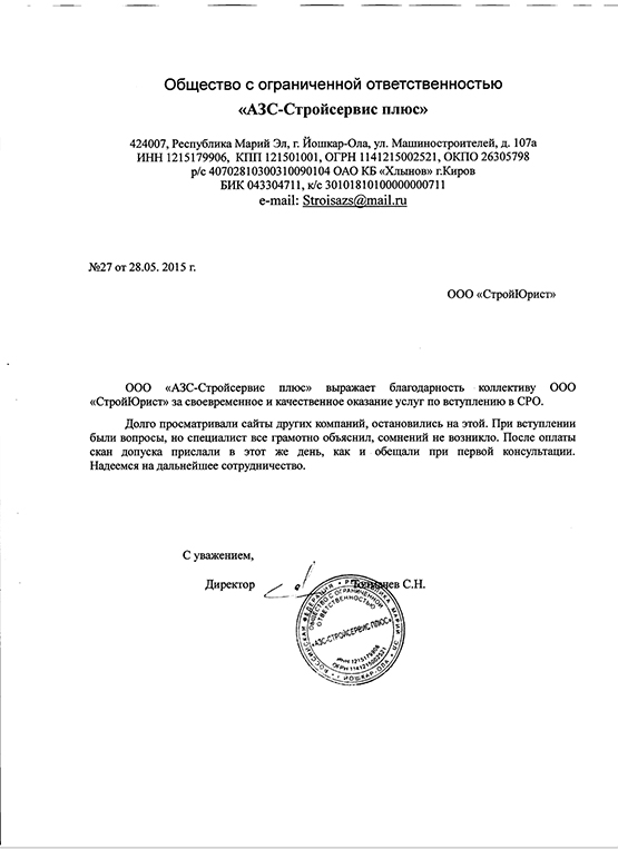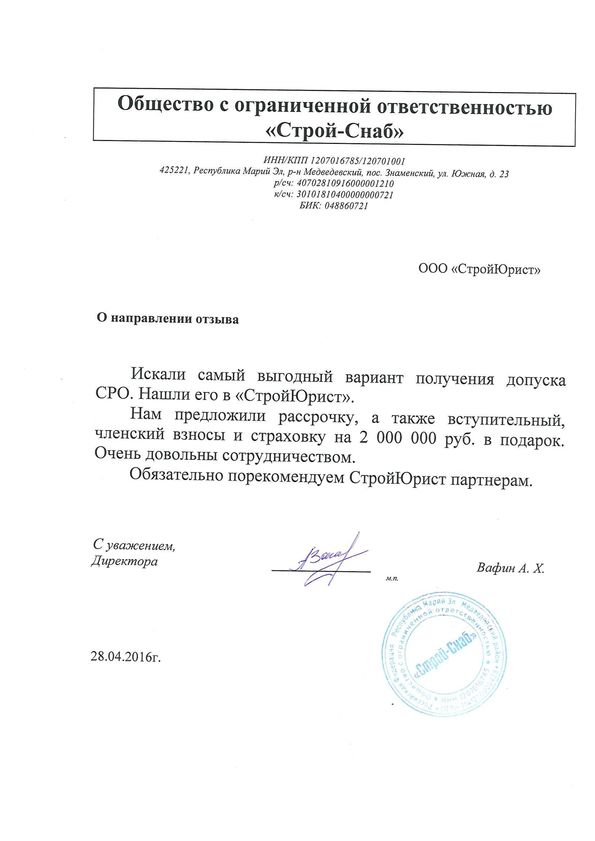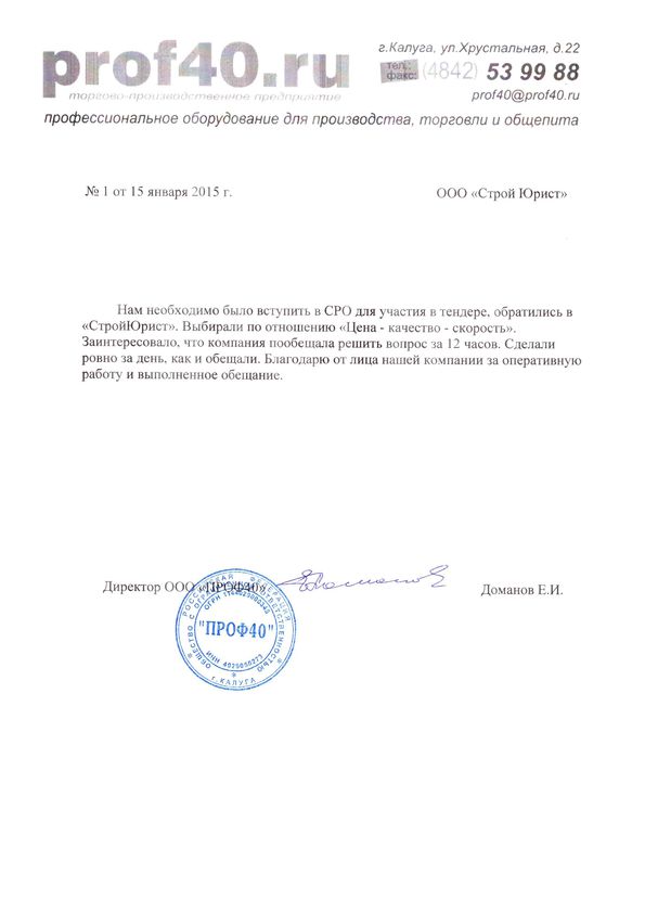 Отзывы клиентов "СтройЮрист" по вступлению в СРО в Зеленограде