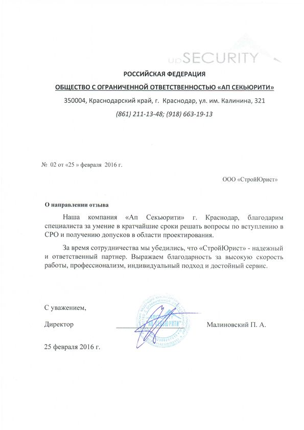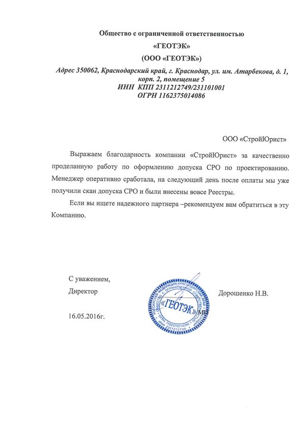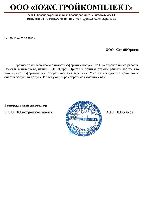 Отзывы клиентов "СтройЮрист" по вступлению в СРО в Зеленограде