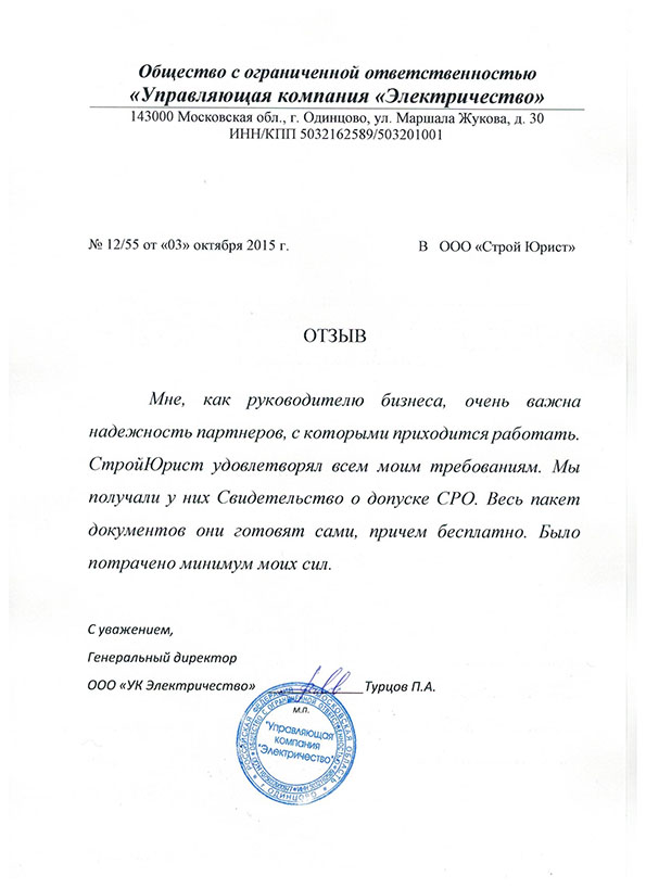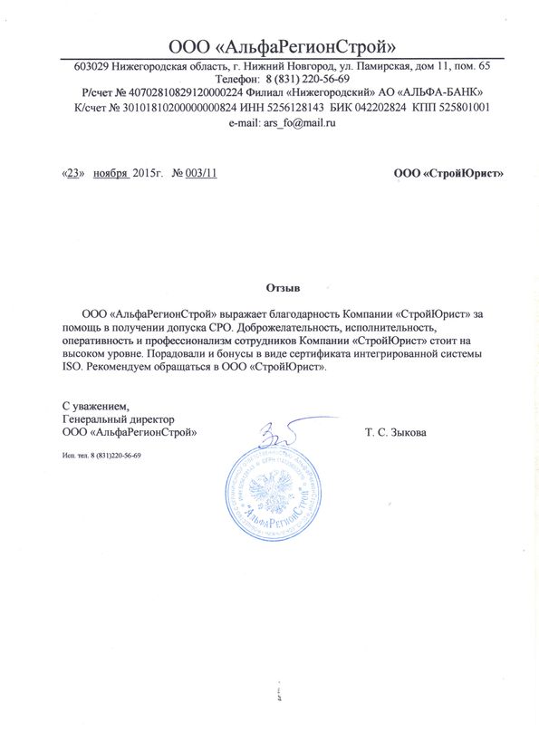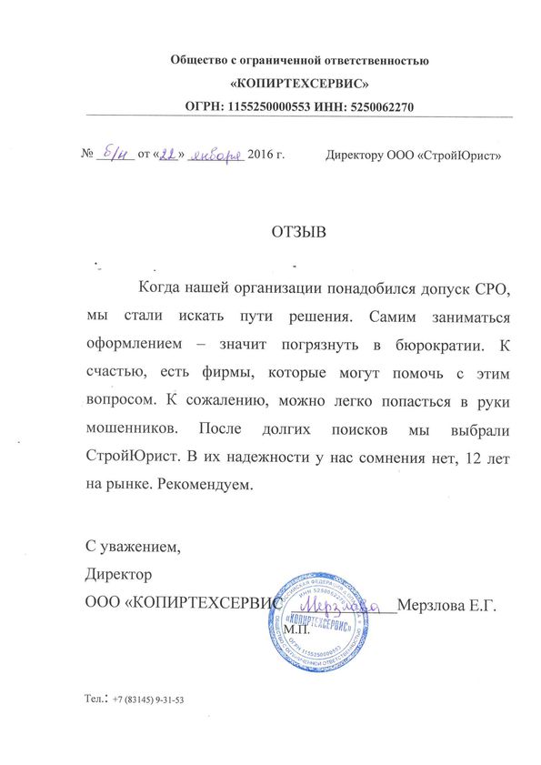 Отзывы клиентов "СтройЮрист" по вступлению в СРО в Зеленограде