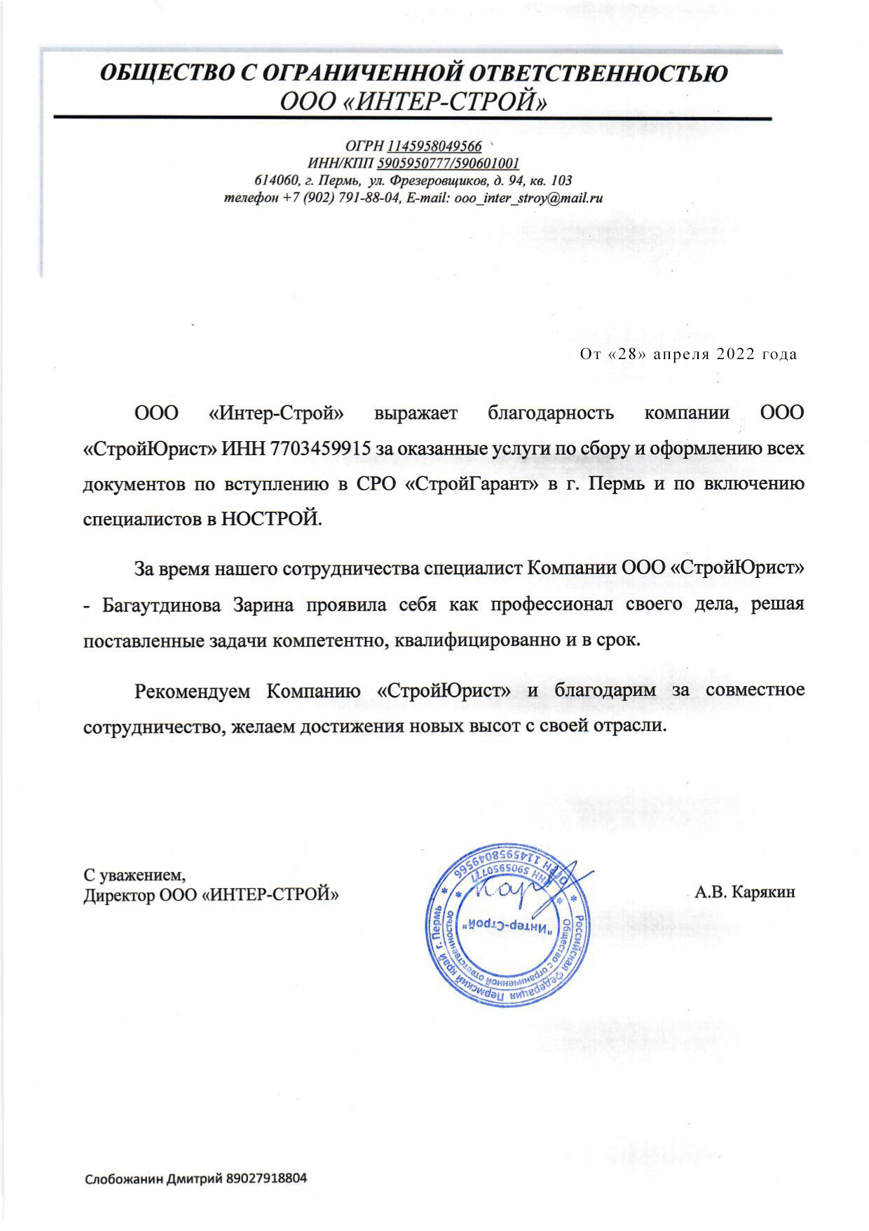 Отзывы клиентов "СтройЮрист" по вступлению в СРО в Зеленограде