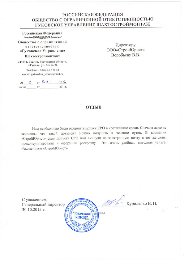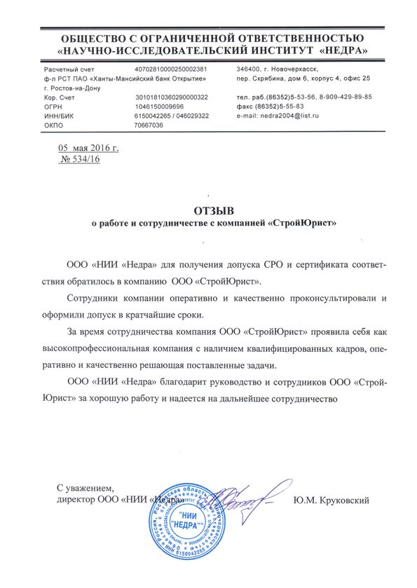 Отзывы клиентов "СтройЮрист" по вступлению в СРО в Зеленограде