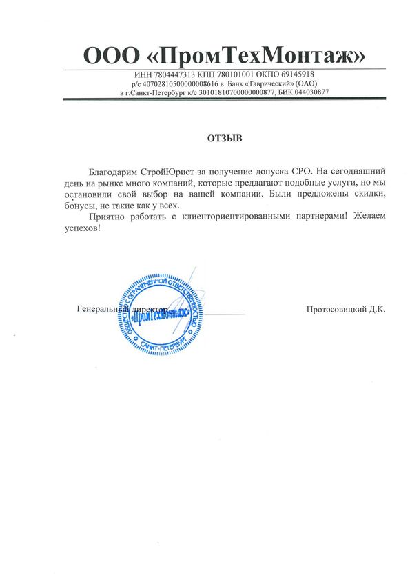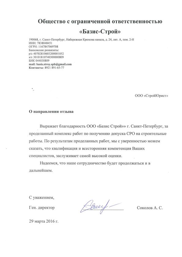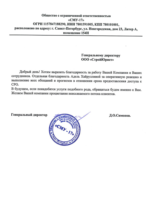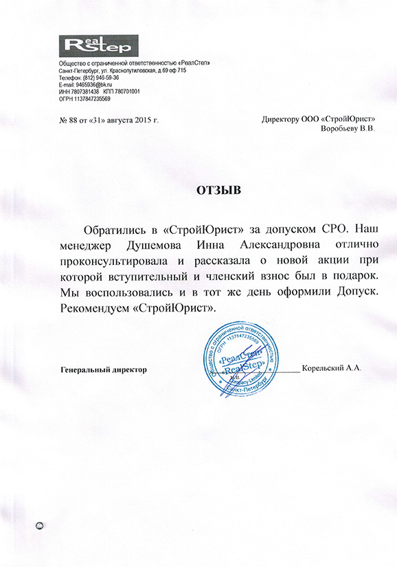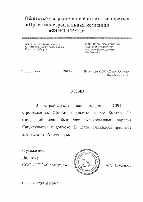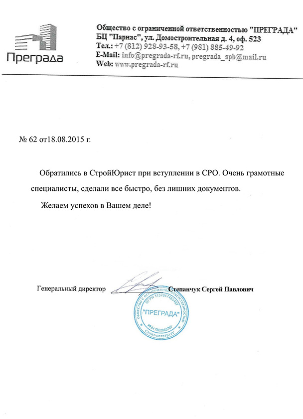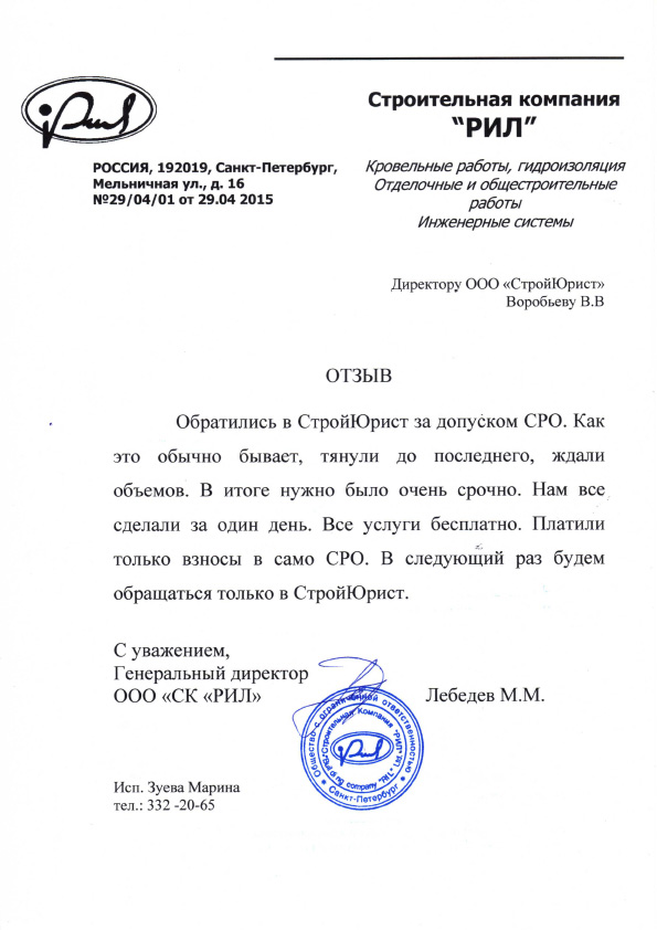 Отзывы клиентов "СтройЮрист" по вступлению в СРО в Зеленограде