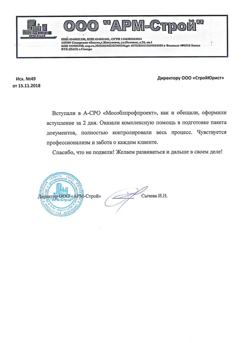 Отзывы клиентов "СтройЮрист" по вступлению в СРО в Зеленограде
