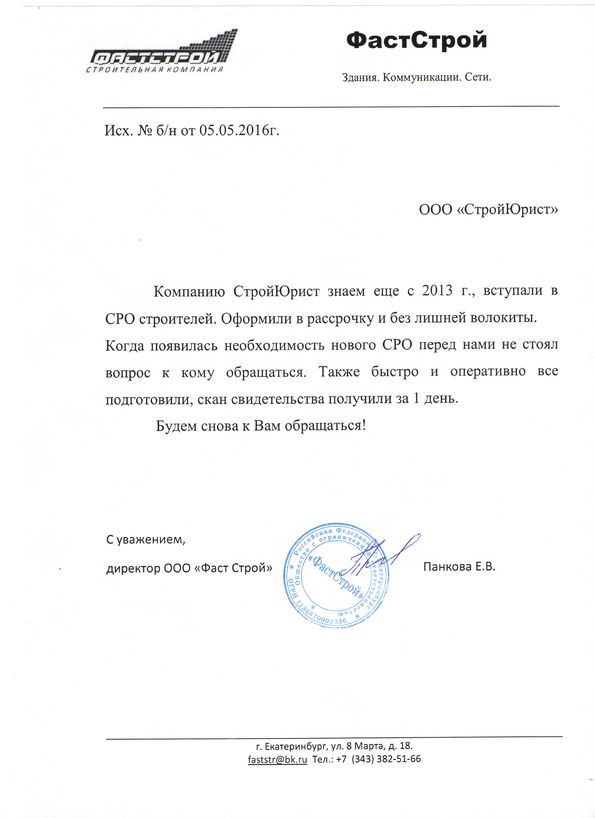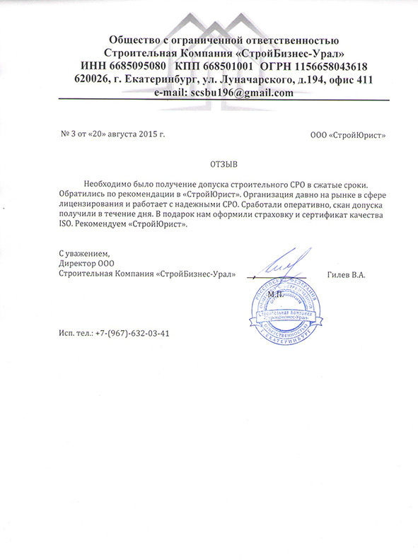 Отзывы клиентов "СтройЮрист" по вступлению в СРО в Зеленограде