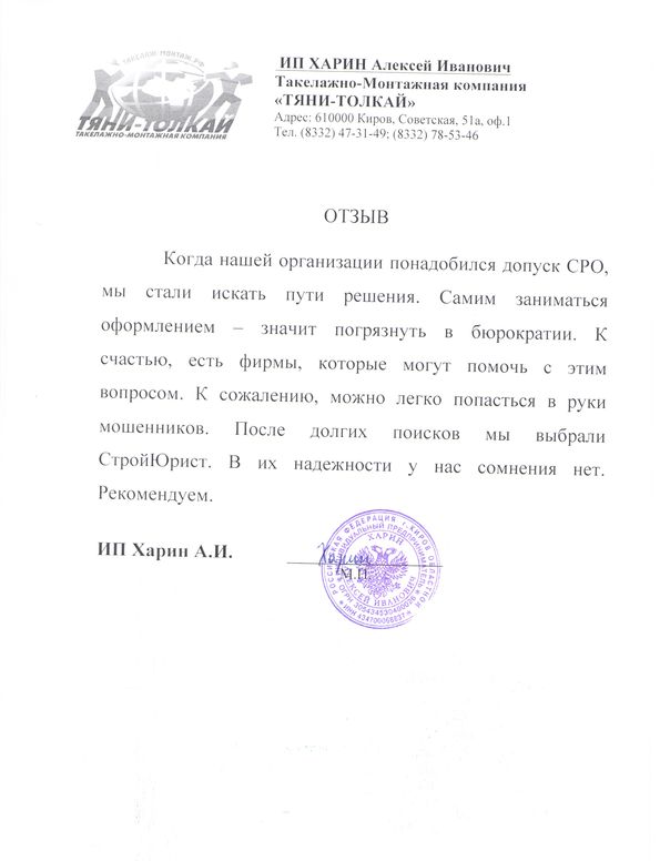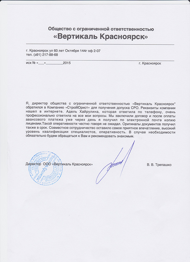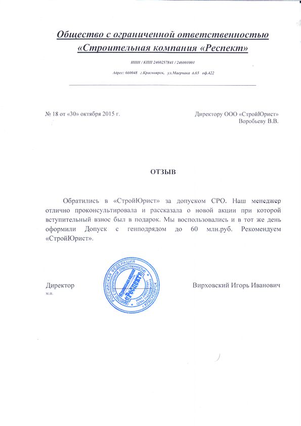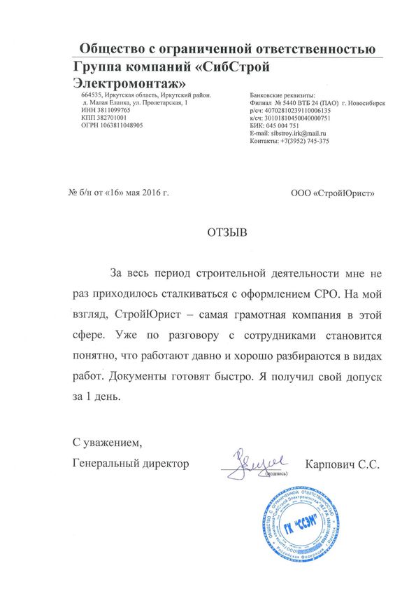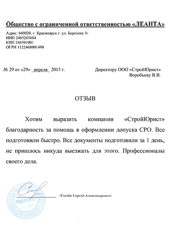 Отзывы клиентов "СтройЮрист" по вступлению в СРО в Зеленограде