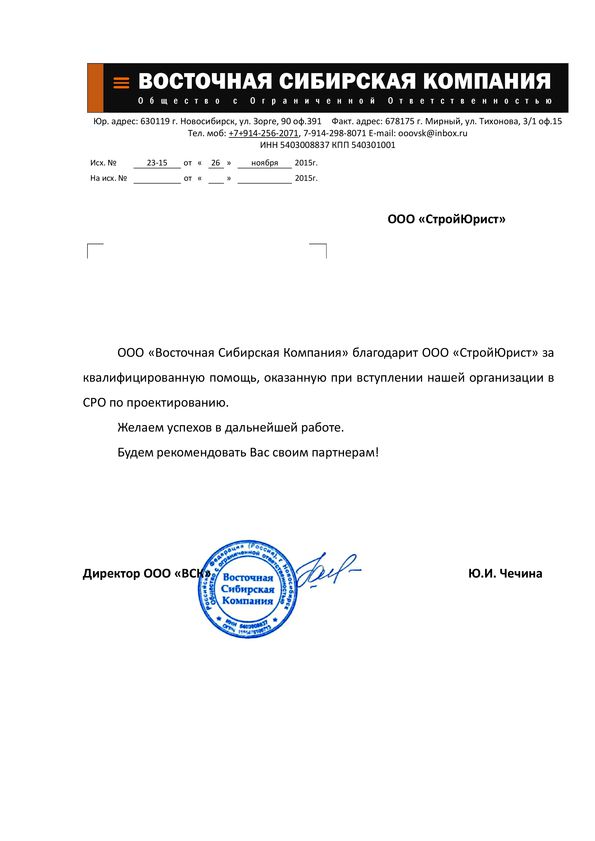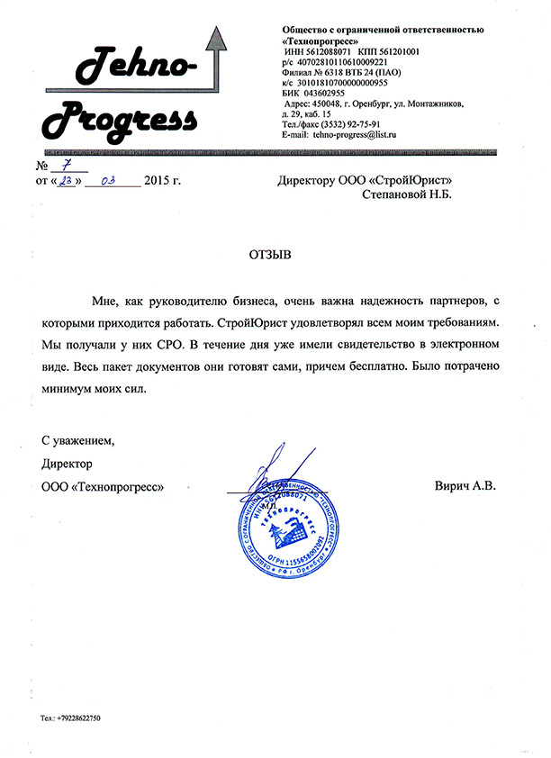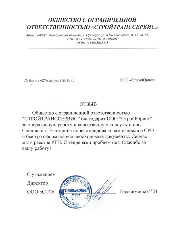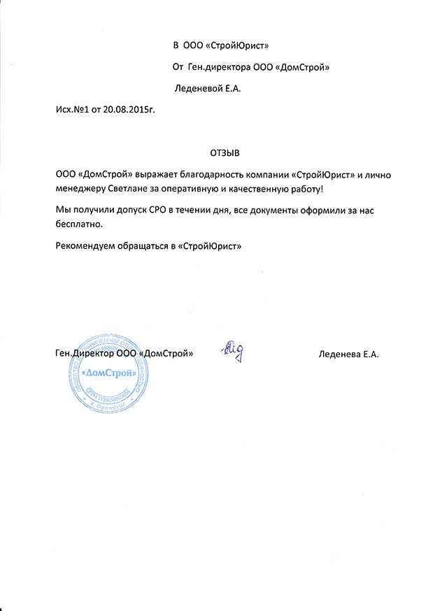 Отзывы клиентов "СтройЮрист" по вступлению в СРО в Зеленограде