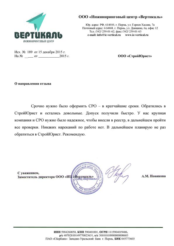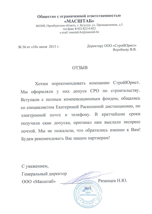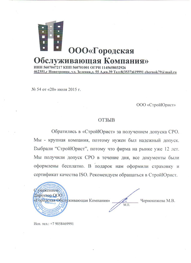 Отзывы клиентов "СтройЮрист" по вступлению в СРО в Зеленограде