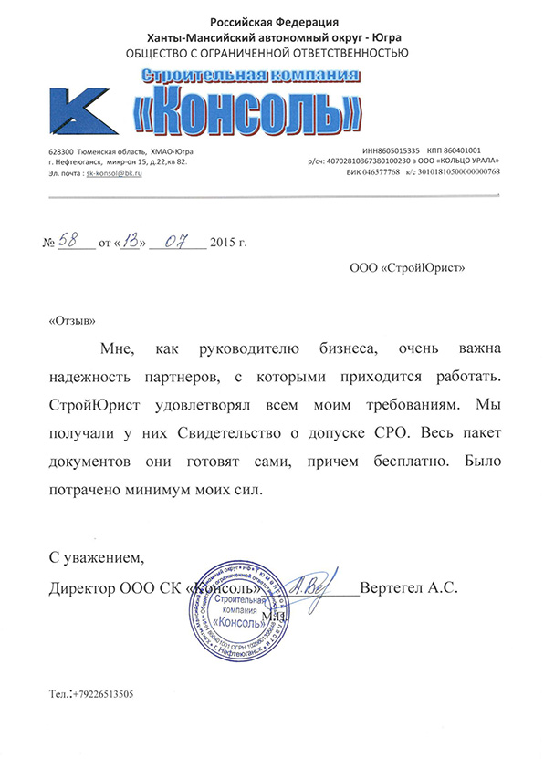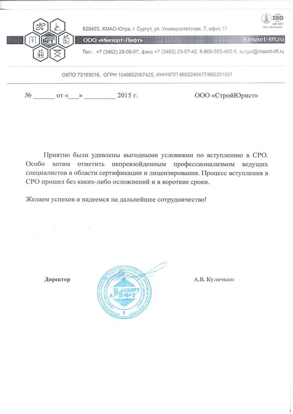 Отзывы клиентов "СтройЮрист" по вступлению в СРО в Зеленограде
