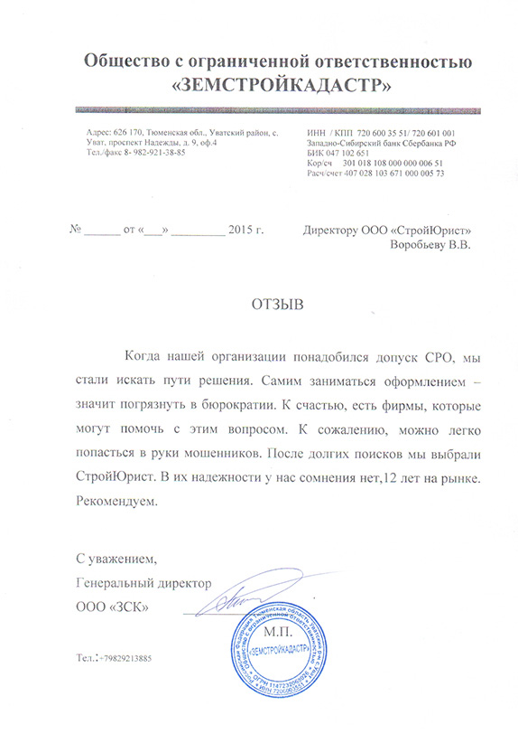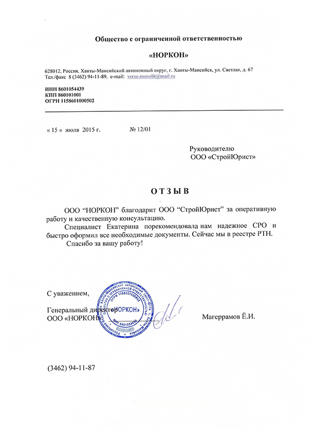 Отзывы клиентов "СтройЮрист" по вступлению в СРО в Зеленограде
