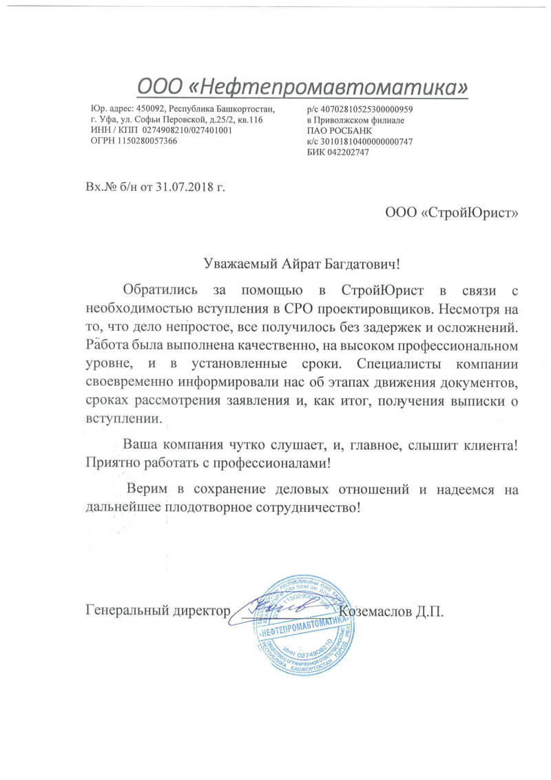 Отзывы клиентов "СтройЮрист" по вступлению в СРО в Зеленограде