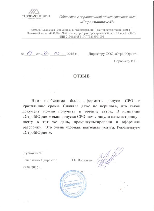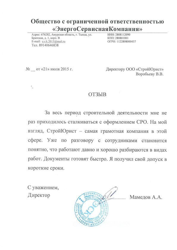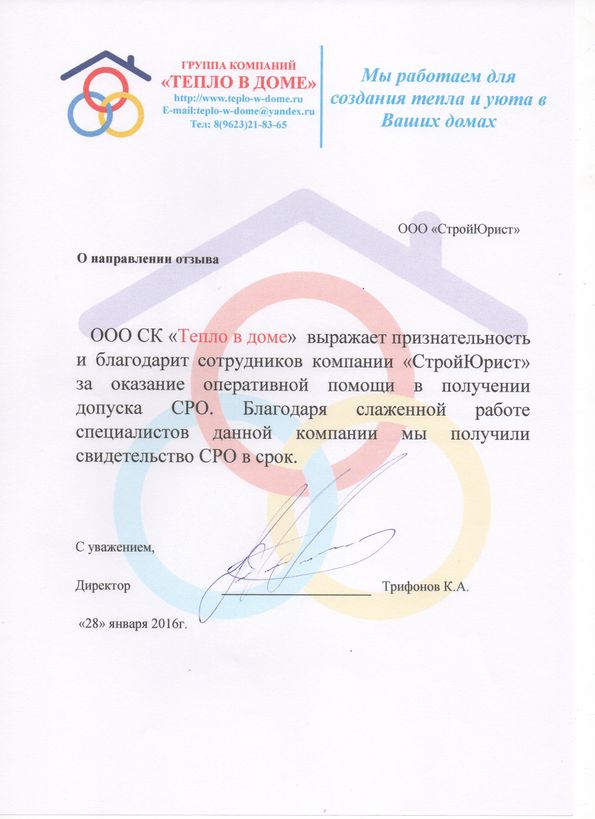 Отзывы клиентов "СтройЮрист" по вступлению в СРО в Зеленограде