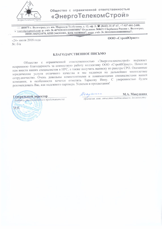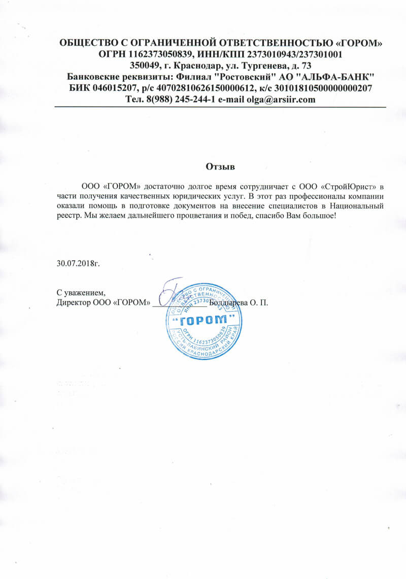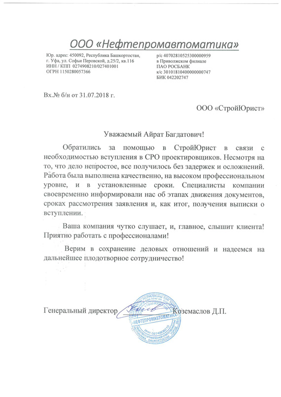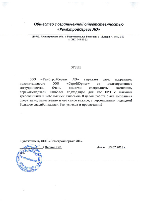 Отзывы клиентов "СтройЮрист" по вступлению в СРО в Зеленограде