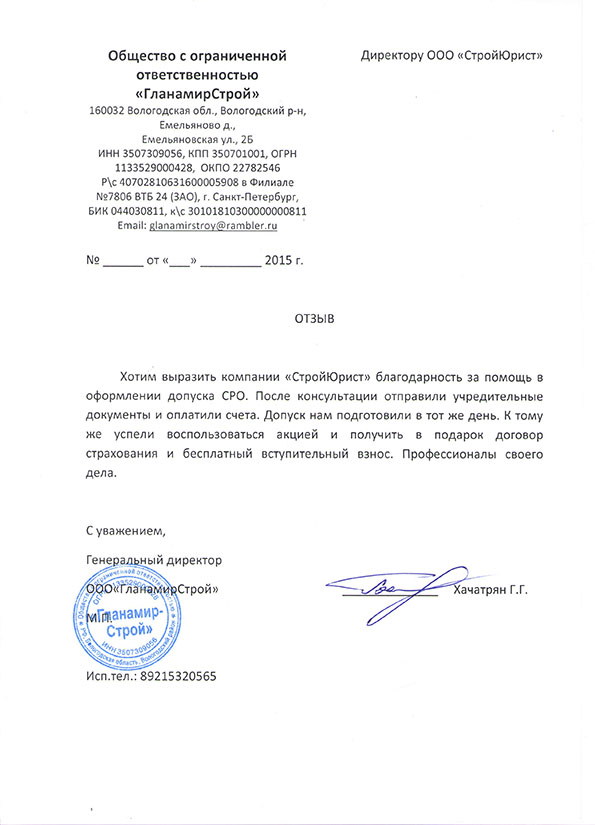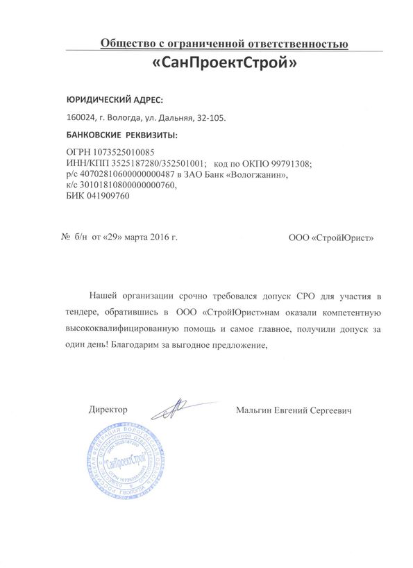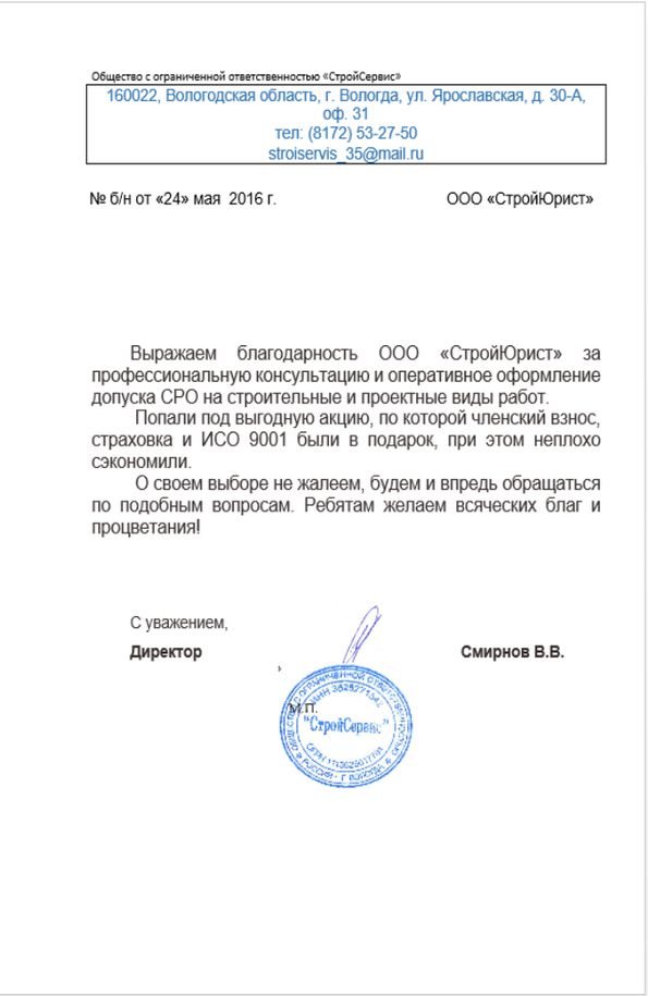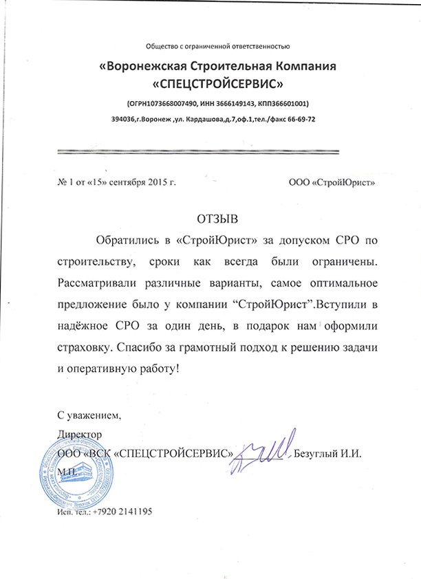 Отзывы клиентов "СтройЮрист" по вступлению в СРО в Зеленограде
